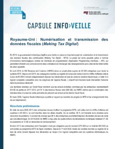 23e capsule de veille RQ/ENAP – Royaume-Uni : Numérisation et transmission des données fiscales (Making Tax Digital)