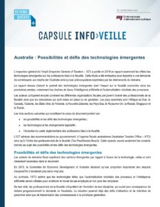 9ème capsule de veille REVENU QUEBEC/ENAP – Australie : Possibilités et défis des technologies émergentes