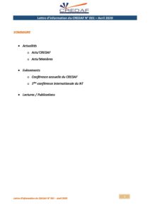 Lettre d’information N° 001 – Avril 2020 – Mise à jour au 20 avril 2020