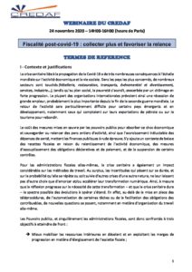 WEBINAIRE CREDAF – FISCALITE POST-COVID-19 : COLLECTER PLUS ET FAVORISER LA RELANCE